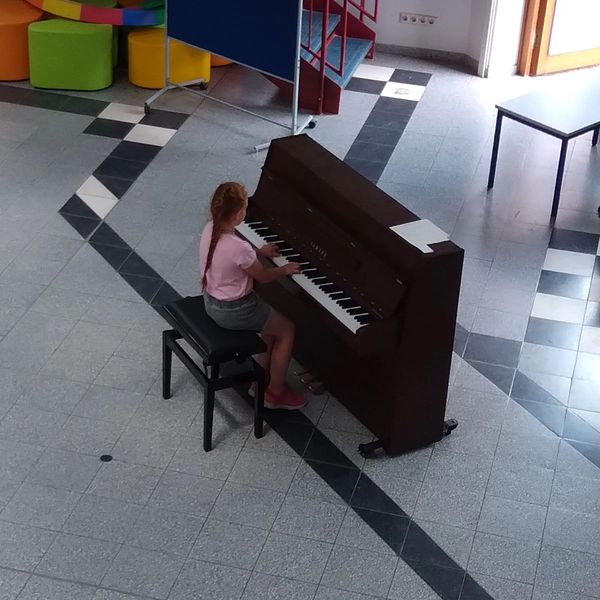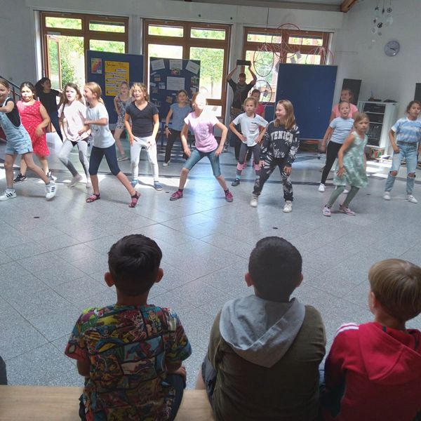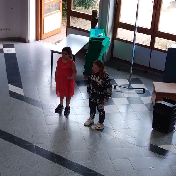 Auf der Offenen Bühne präsentieren Kinder kleine Acts, die sie im Ganztag, während der Pausen oder zuhause einstudiert haben. Dieses Mal staunte das Publikum über Tanzgruppen, eine Zaubershow, Sketche, Akrobatik und Musik.