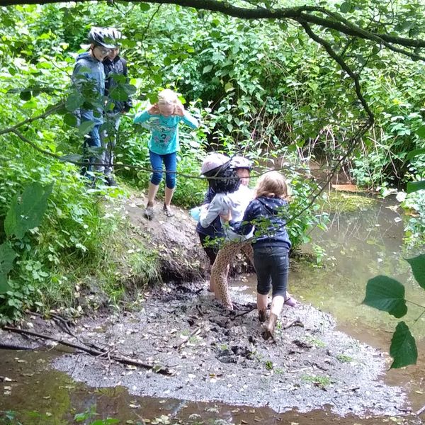 An diesem tollen Tag haben die Kinder ihre Umgebung mit dem Fahrrad erkundet. Am Ziel angekommen, wurde gemütlich gepicknickt, in der Ihme gewatet und gematscht.