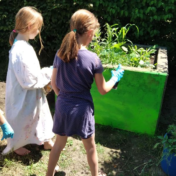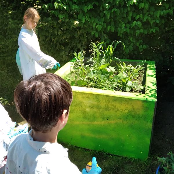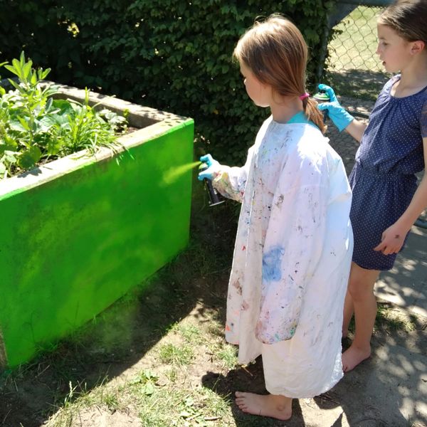 Der 4. Jahrgang hat eine eigenständige Garten AG auf die Beine gestellt. Zum Abschied konnten sich die Kinder mit einem wunderschönen Graffiti im Schulgarten verewigen.