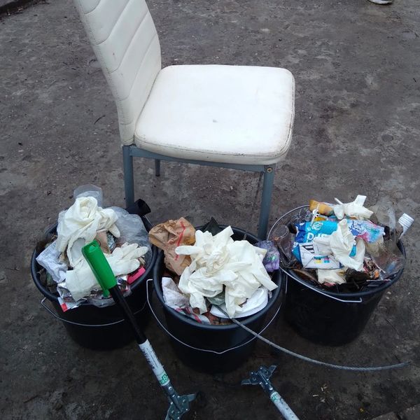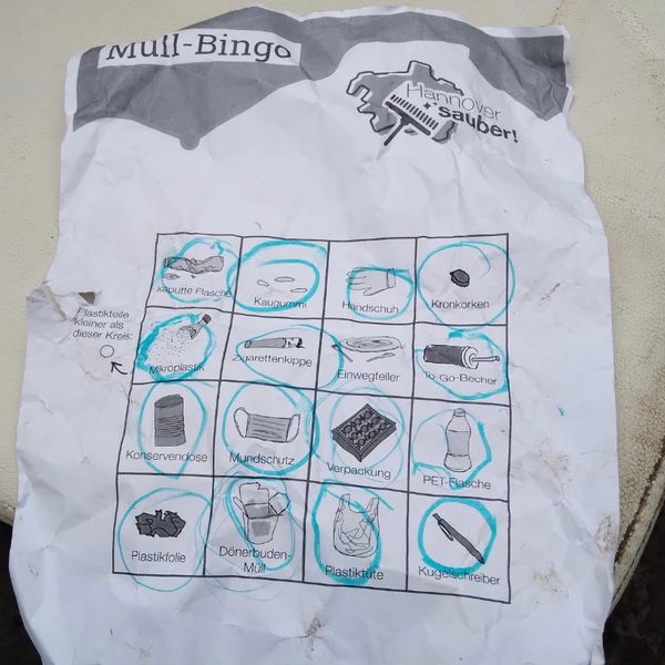 Die Tresckow-Natur-Ranger AG hat ebenfalls Abfall gesammelt und in gut 45 Minuten drei volle Eimer Müll aus den Büschen der nahen Schulumgebung gefischt. Das "Müll-Bingo" stellte uns leider vor keine große Herausforderung. Schnell waren die Reihen gefüllt. Neben Farbeimern war unser kuriosester Fund ein Stuhl, der im Gebüsch lag.